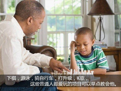 15、下棋,游泳,骑自行车,打升级,K歌,这些普通人都爱玩的项目可以早点教会他。