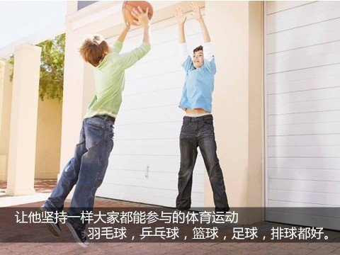 17、让他坚持一样大家都能参与的体育运动,羽毛球,乒乓球,篮球,足球,排球都好。